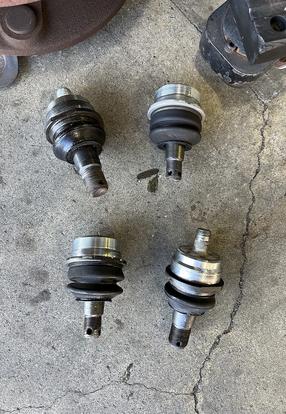 自社のキャリアカーのタイロット、ロアとアッパーのボールジョイントブーツが、ひび割れでグリスが出ているので交換しました。