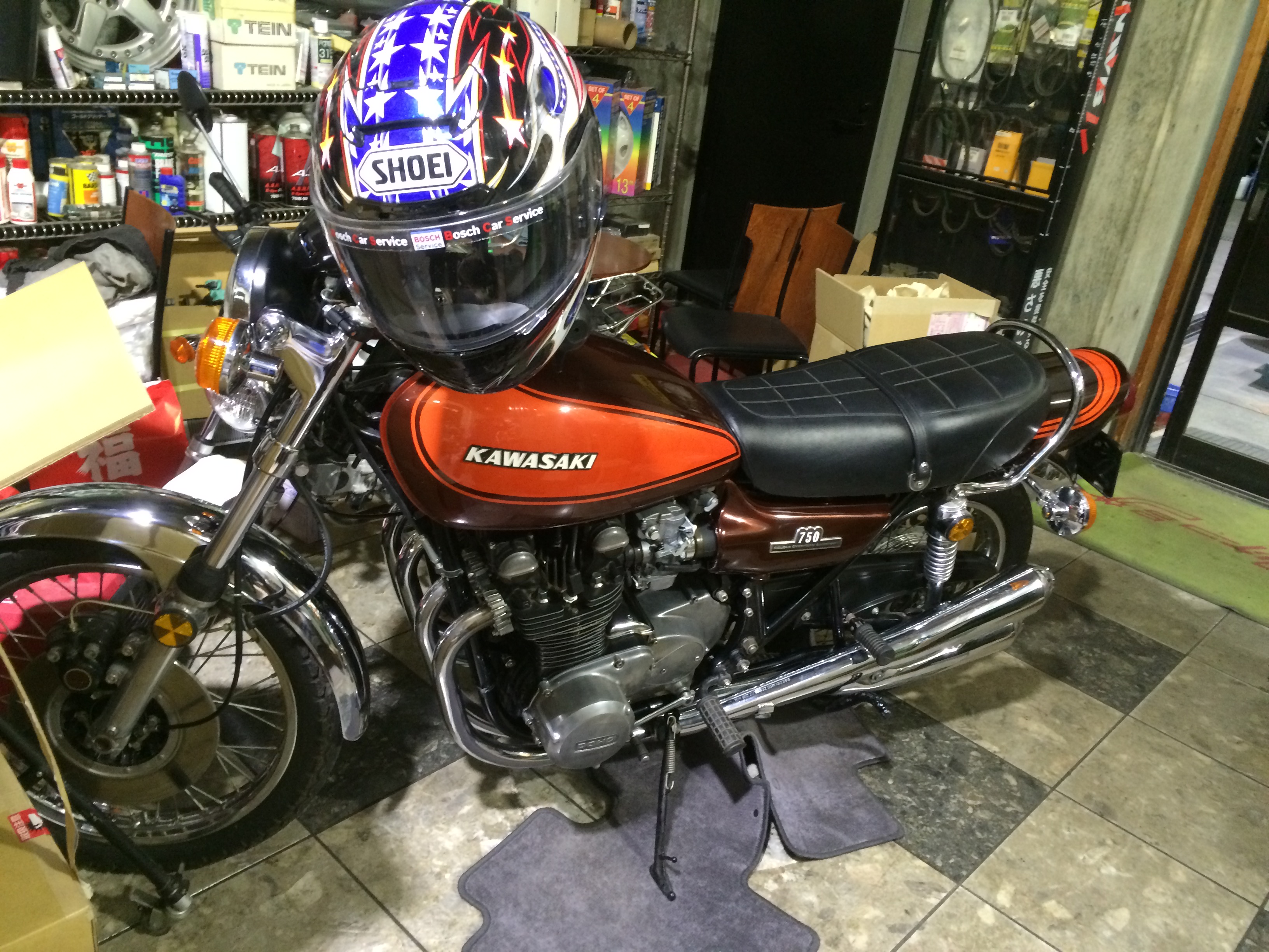ショップ内では現在、歴代名車と言われているカワサキ製 Z2をフルレストア中で有ります。