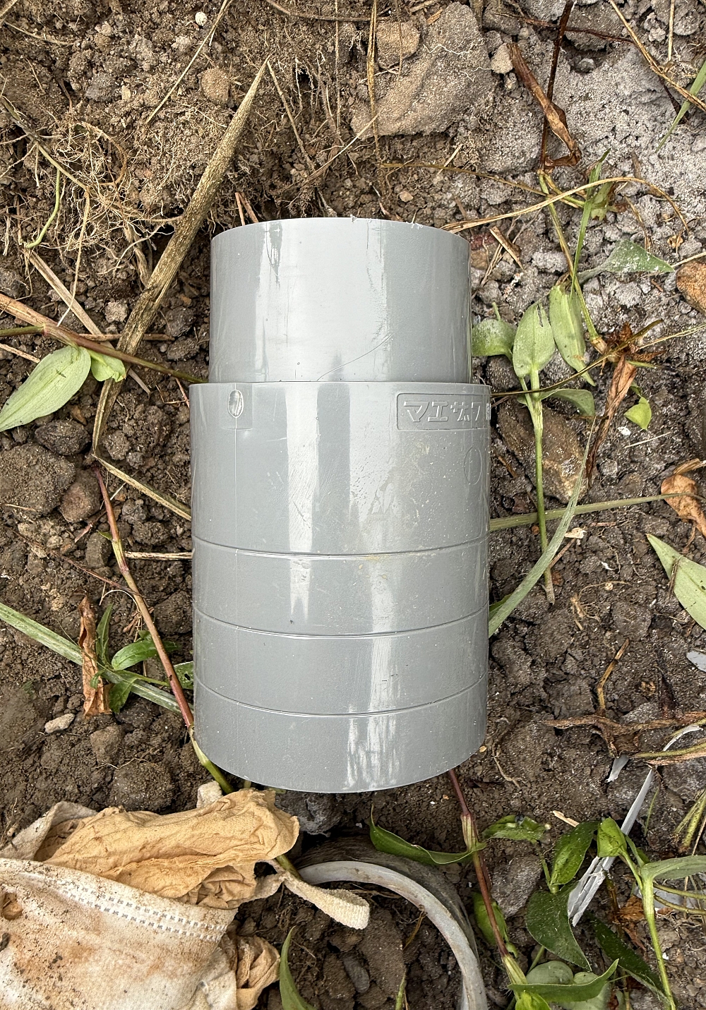 田んぼの給水バルブをトラクターで壊しました。