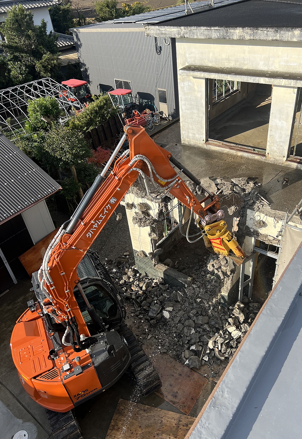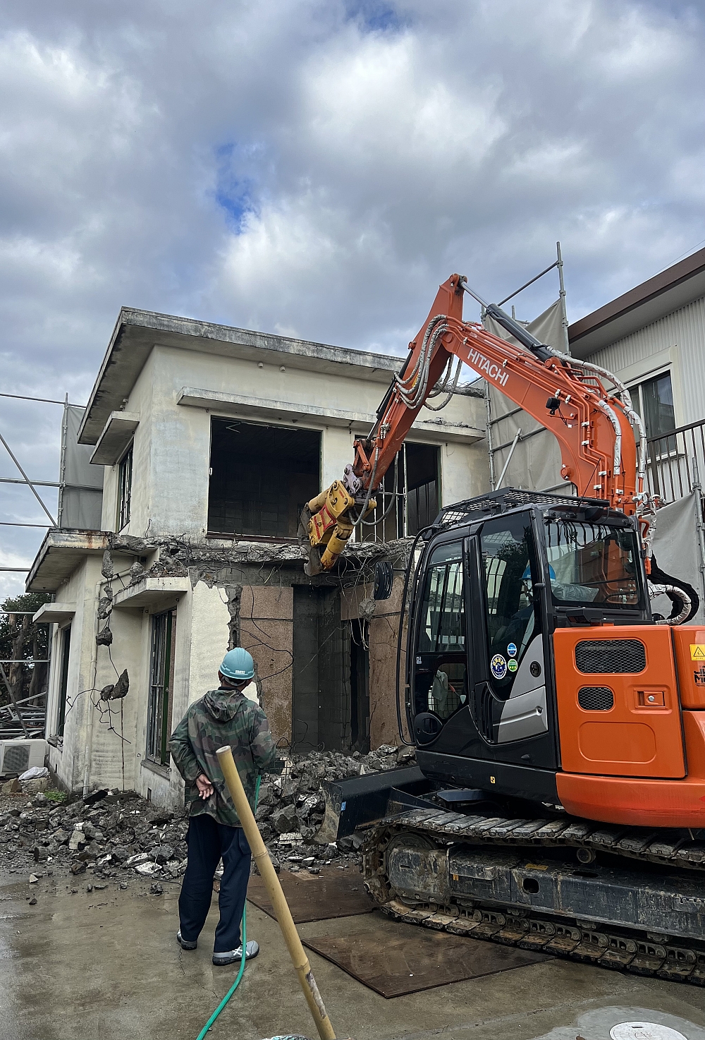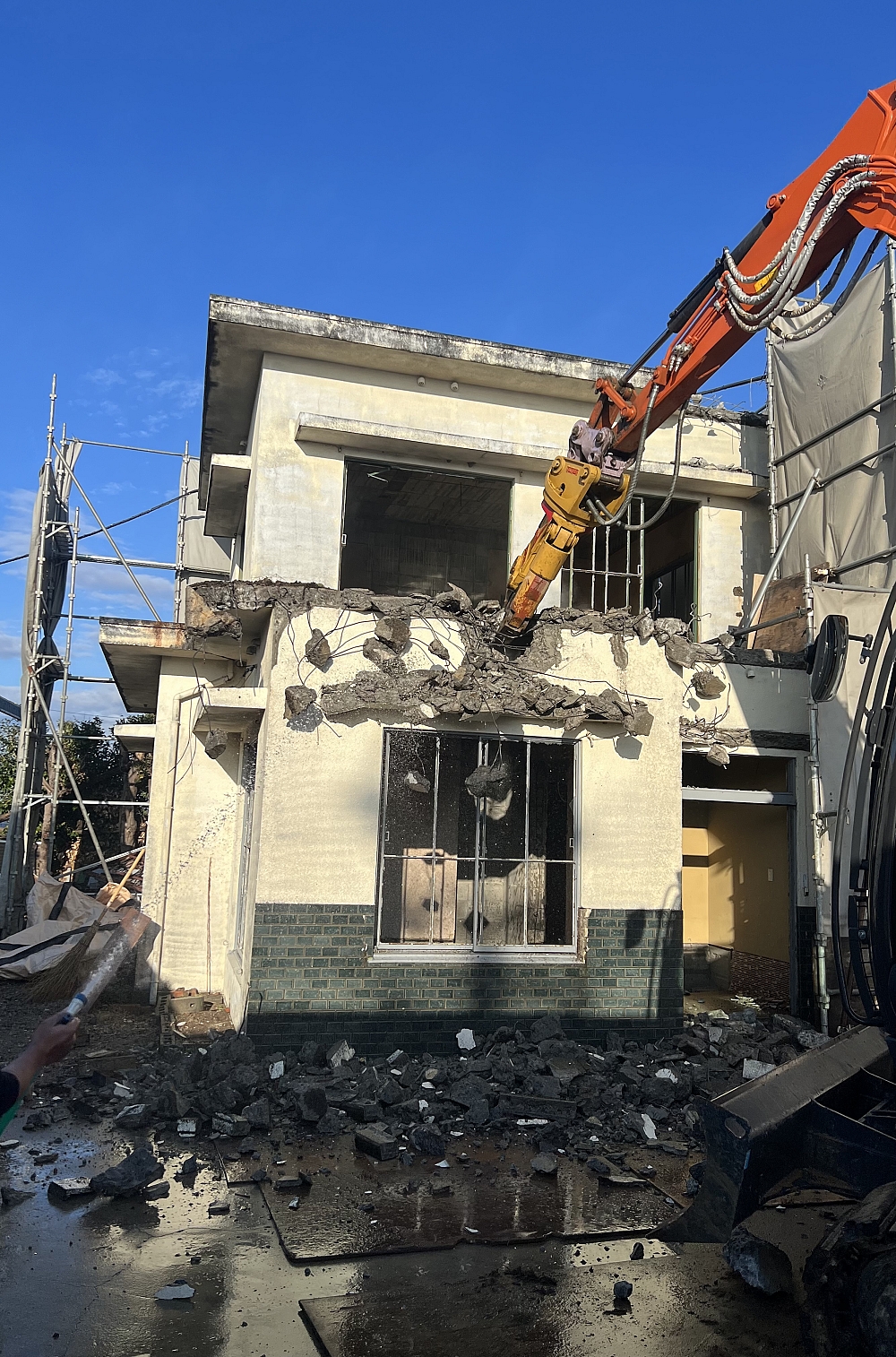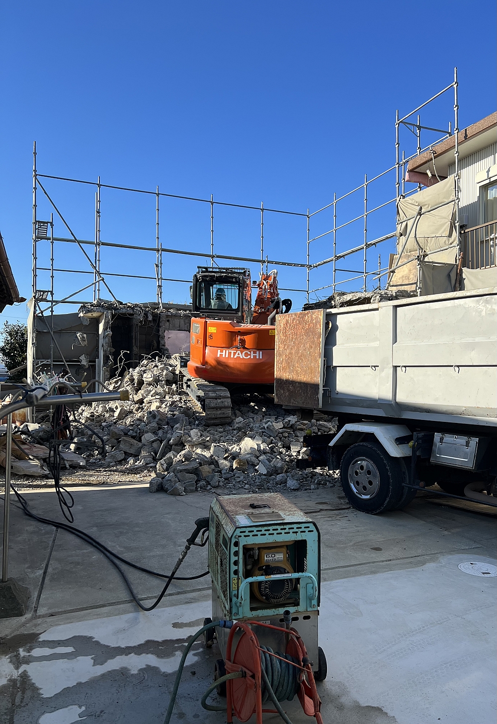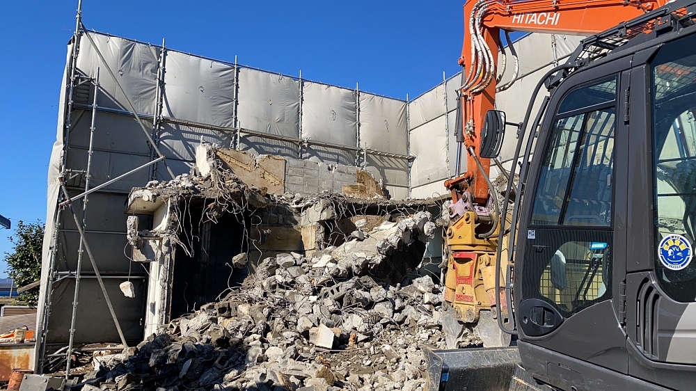 建物解体終わりに近づきました、後は基礎撤去ですね!