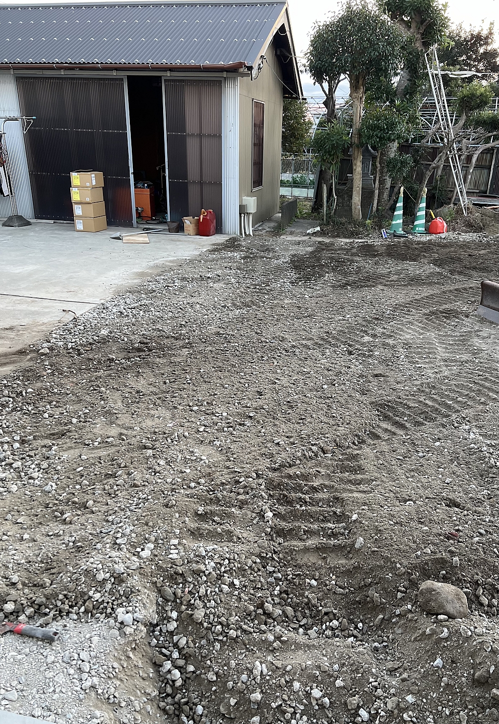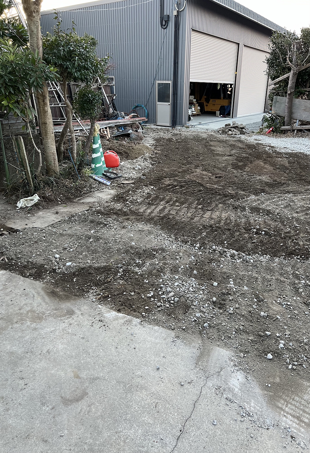 カーポートを作る為に、木を伐採した後の根っこを引き抜きました
