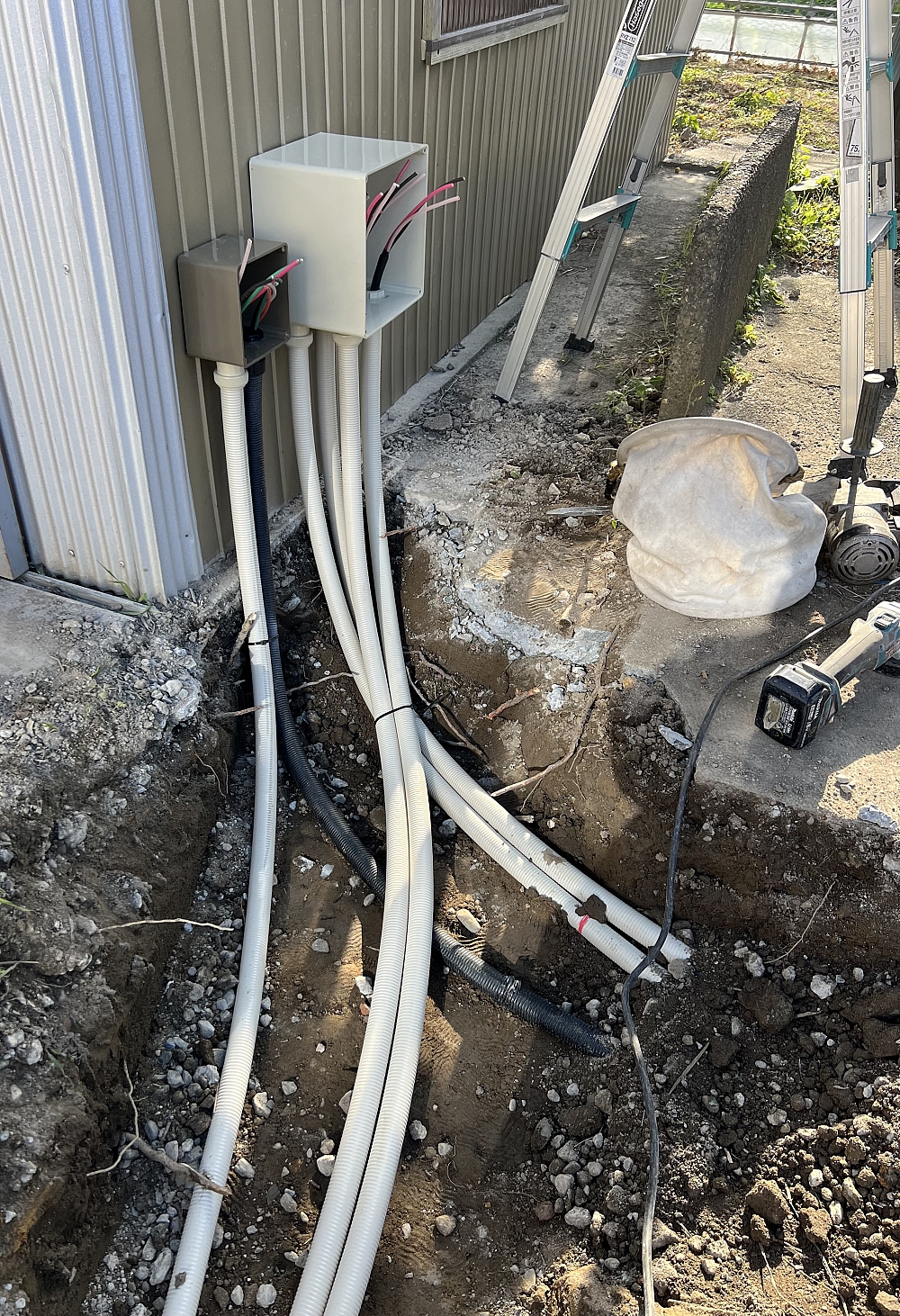 太陽光発電の配線も同時に埋設しました。