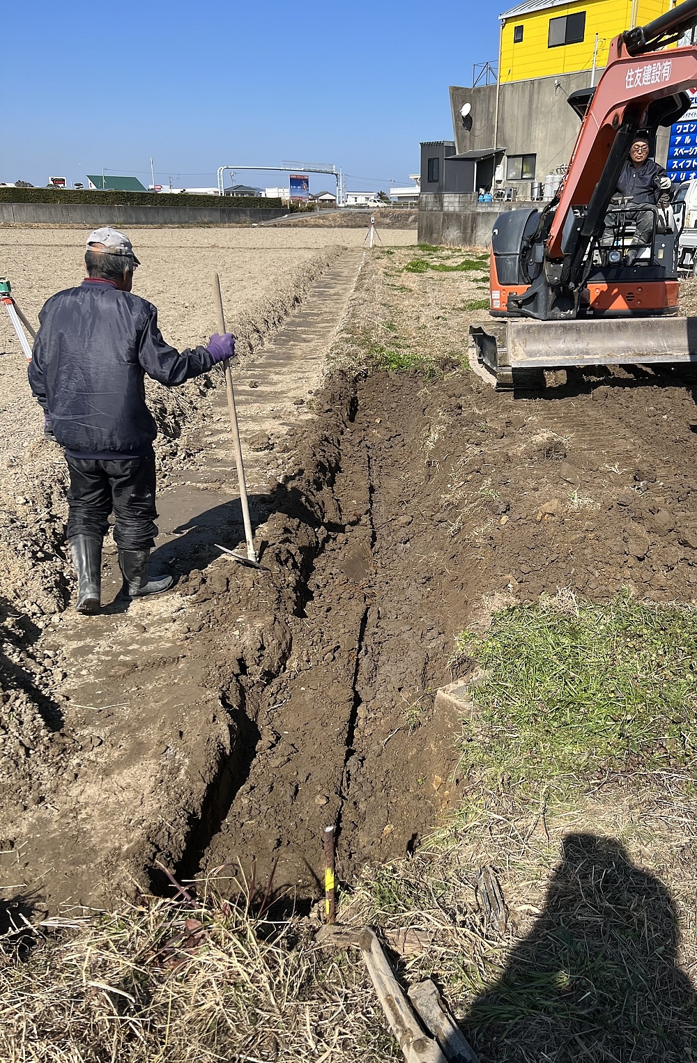 隣の土地との境を決めて掘り方をしました。