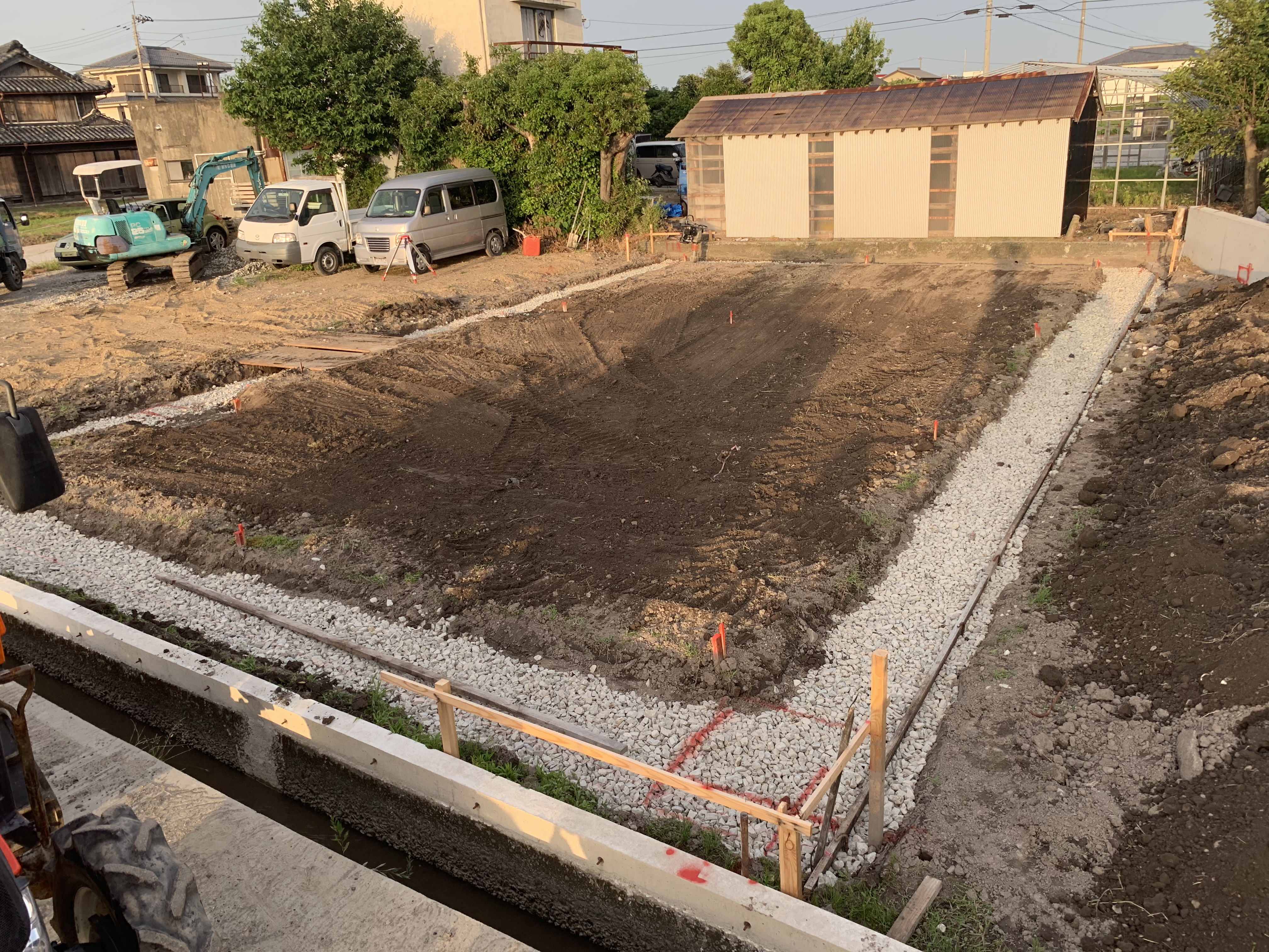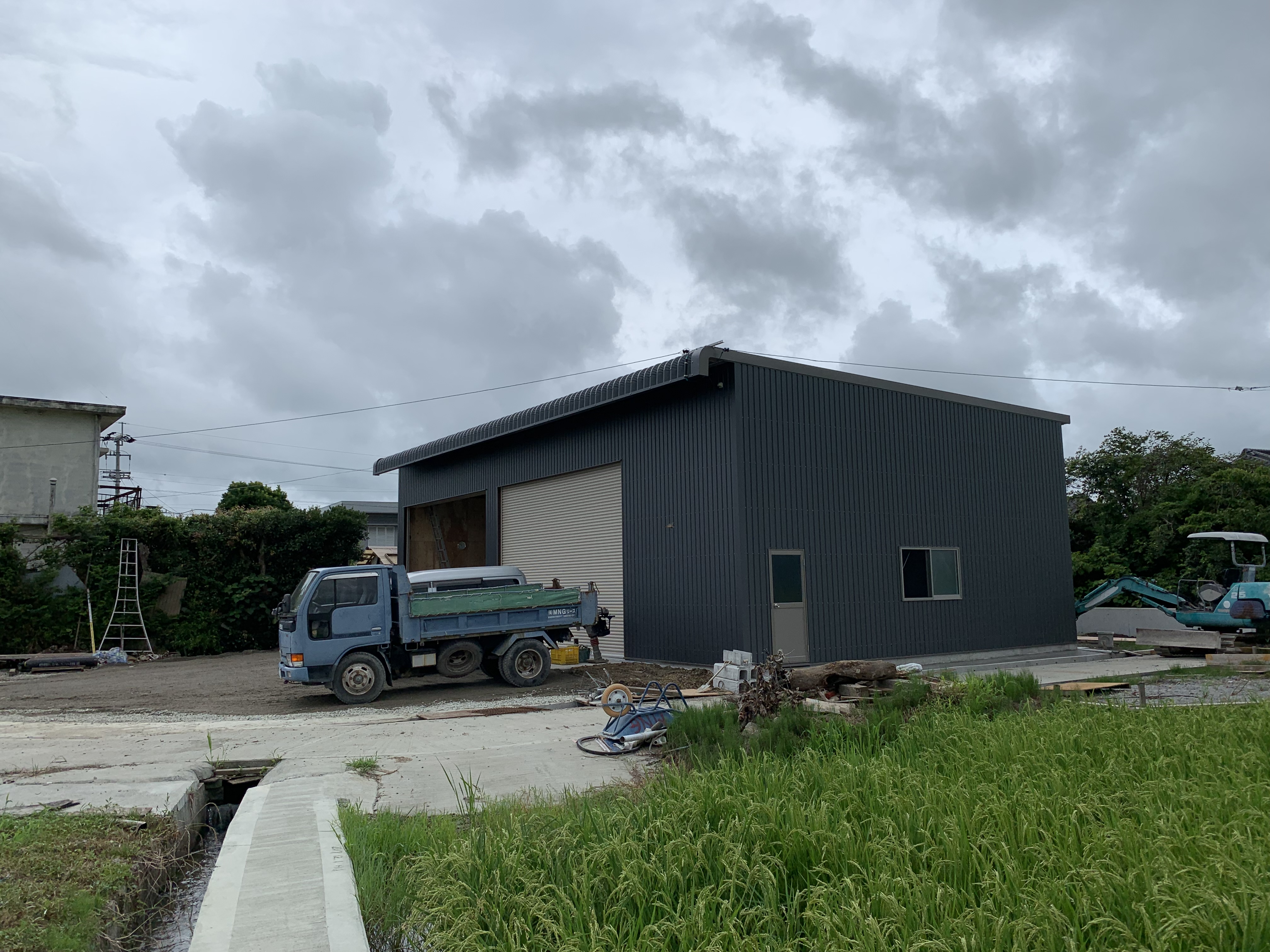 排水溝新設と農業倉庫新築