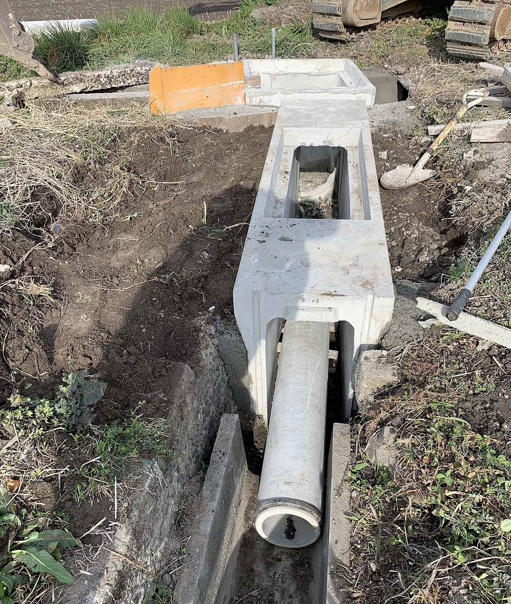 近所の排水路工事をやっています。