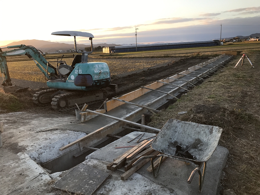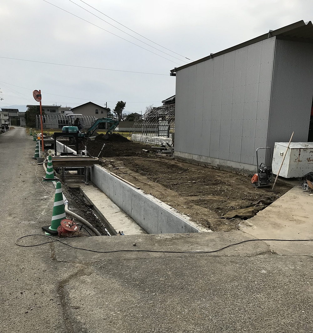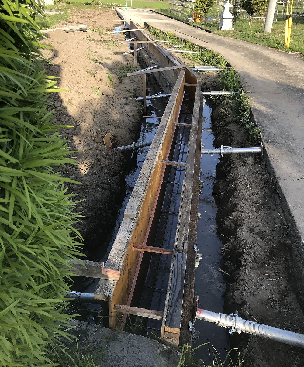 幅1.0メートル長さ30数メートルコンクリート擁壁と土間コン施工