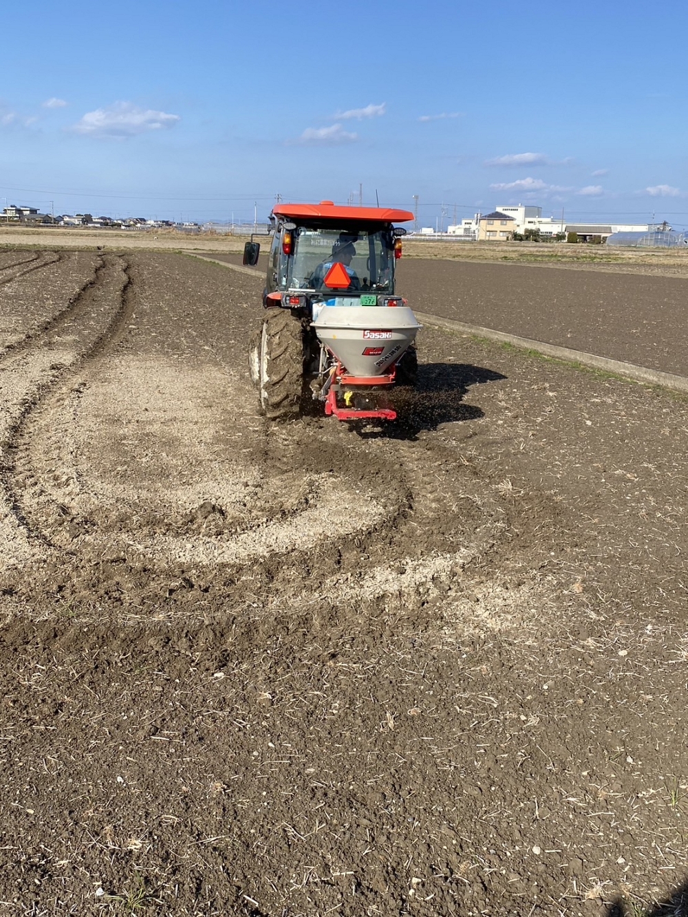 少し鶏糞ん臭いですがいい匂いです、有機肥料を860袋撒きました。