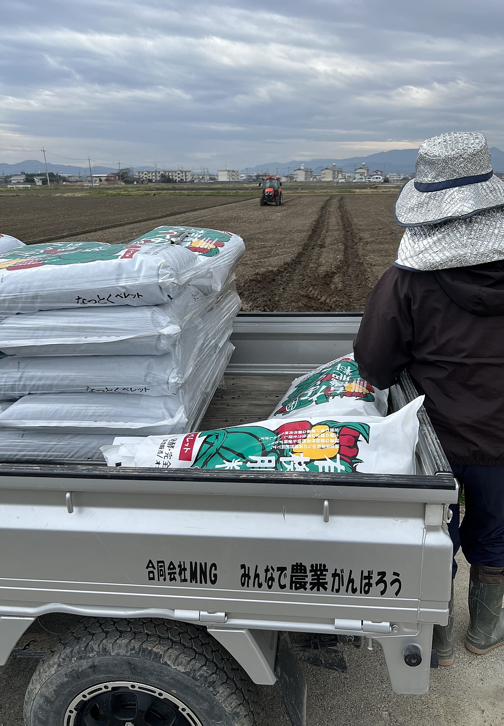 残りの有機肥料810袋の内750袋を散布して引き込みました。