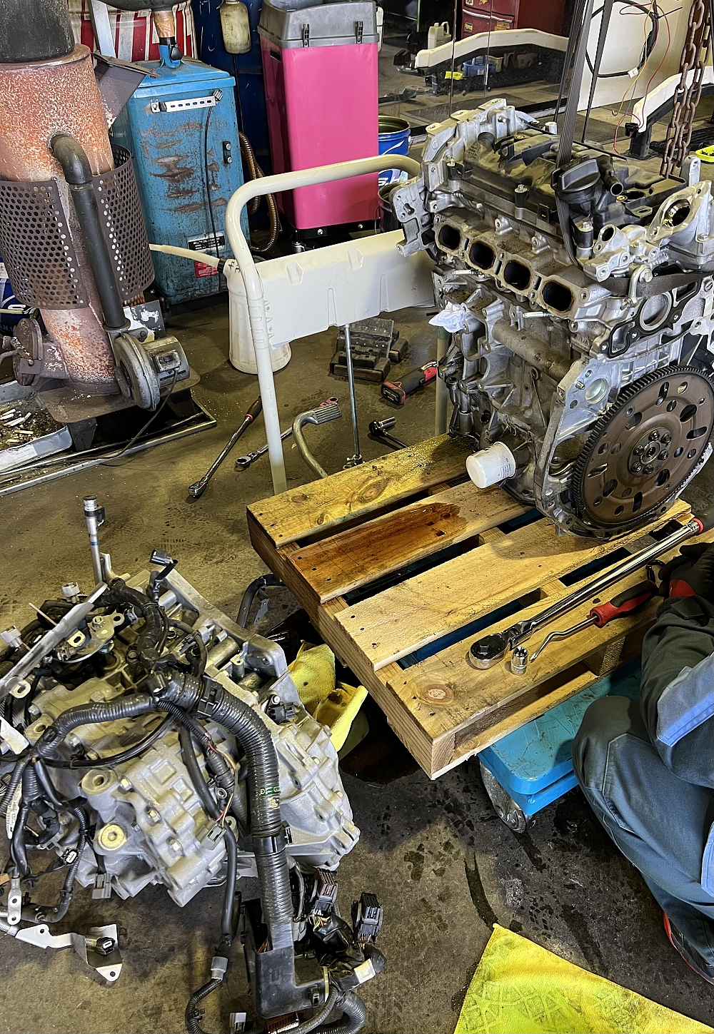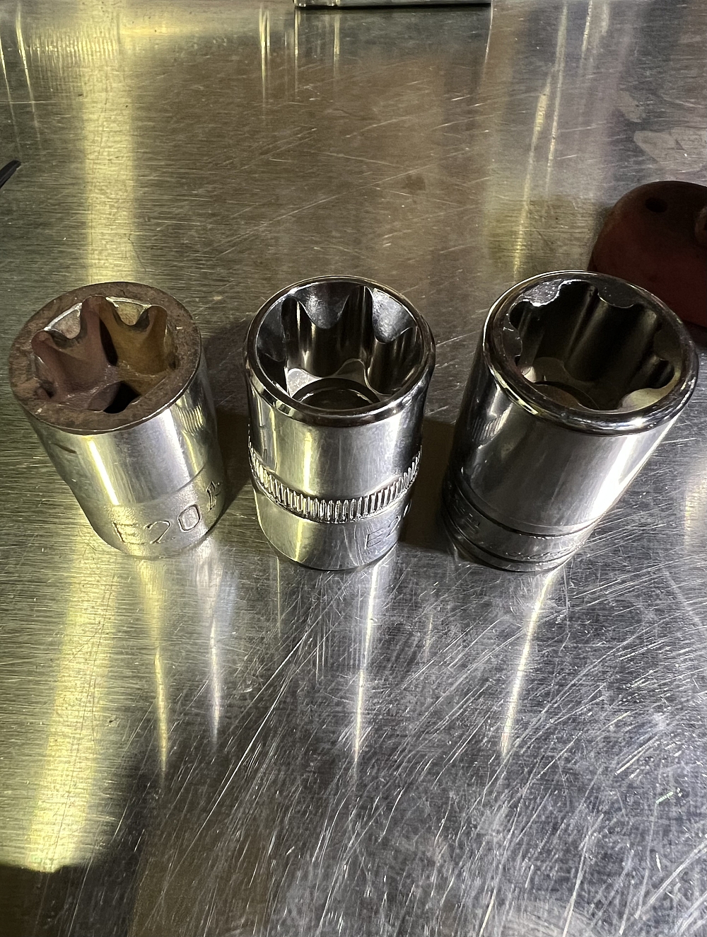 エンジンのチェーンが切れて始動不能。リビルトと交換の途中にフライホイールのボルトが六角でない、続きは明日!