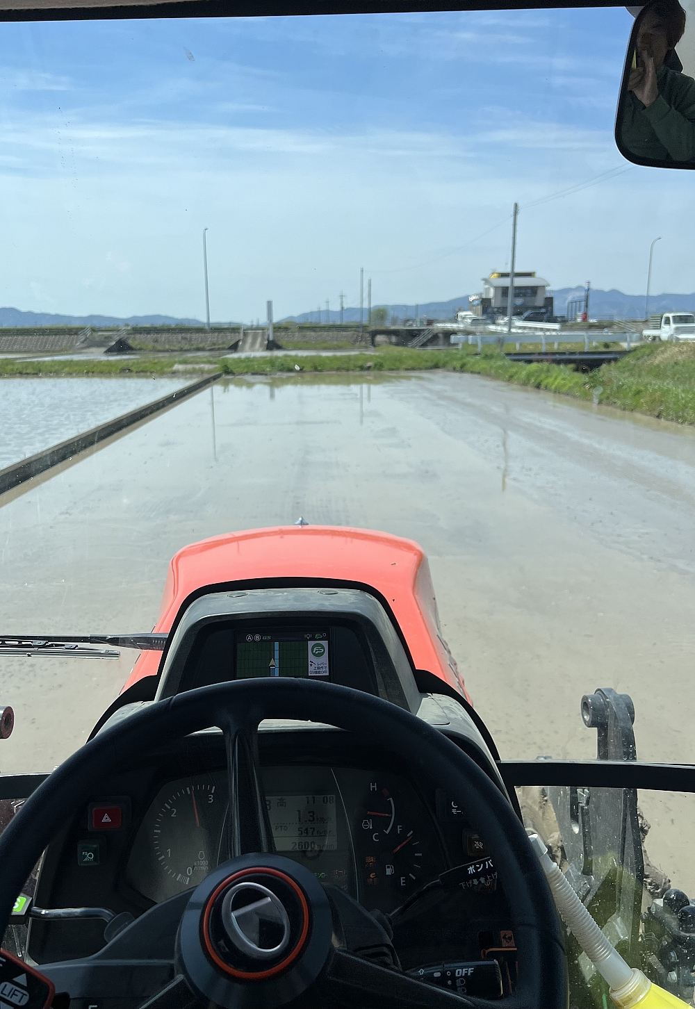 朝から夜まで代掻きしてます息子は田植え機で植え付けてます。