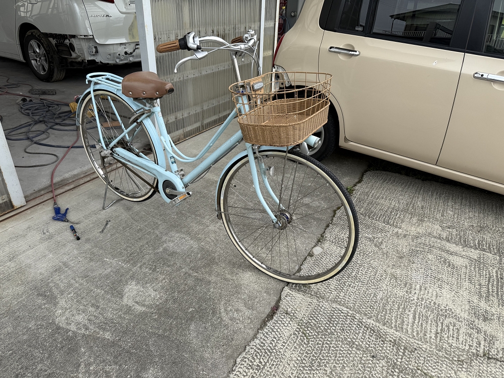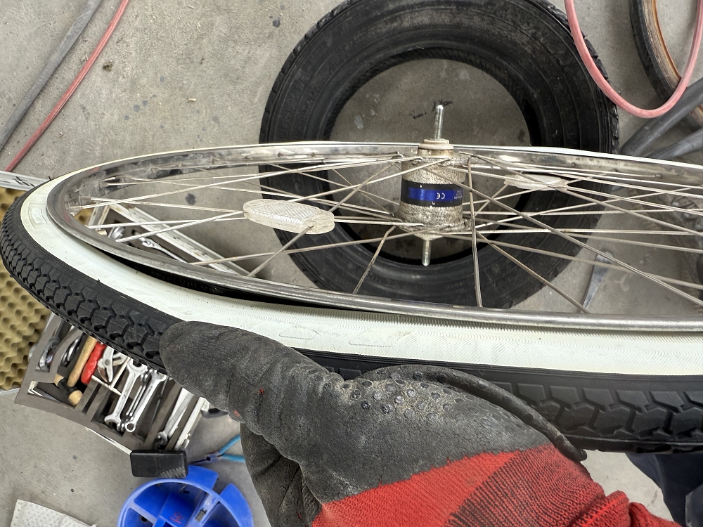 近所のおばさんが孫の使っていた自転車のタイヤ交換を持って来ました。