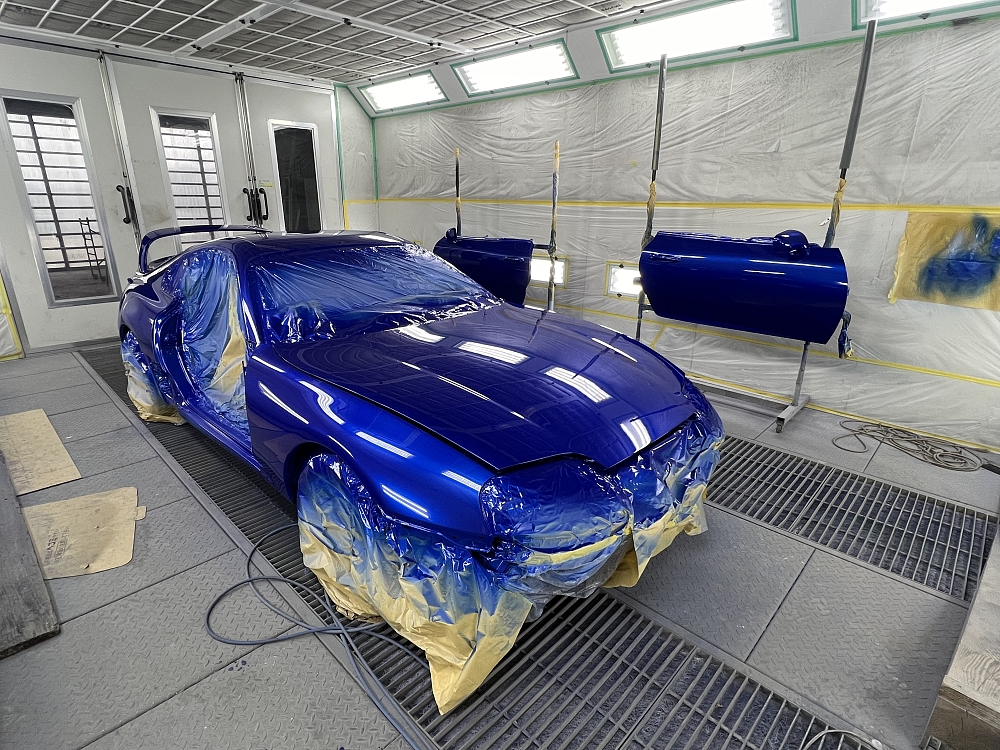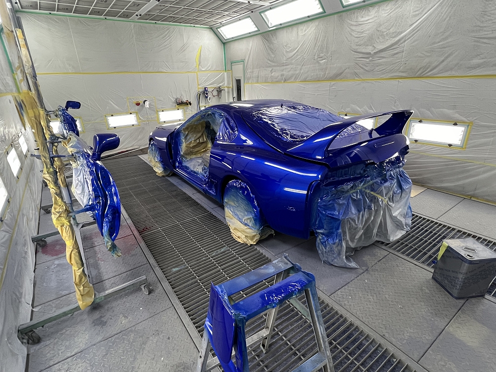 今日はベースを塗り、青色にパールを入れ後はクリア塗装しますが、少し一休み!