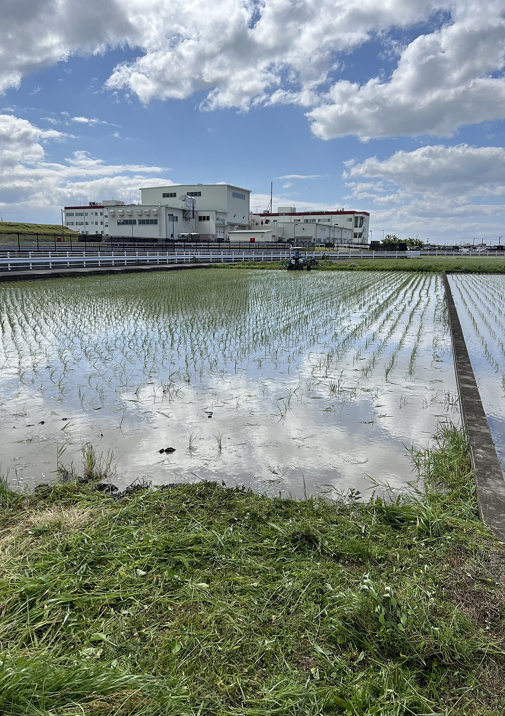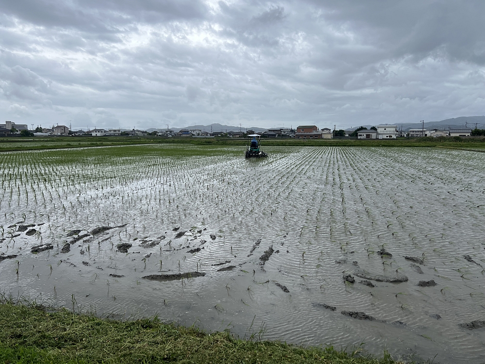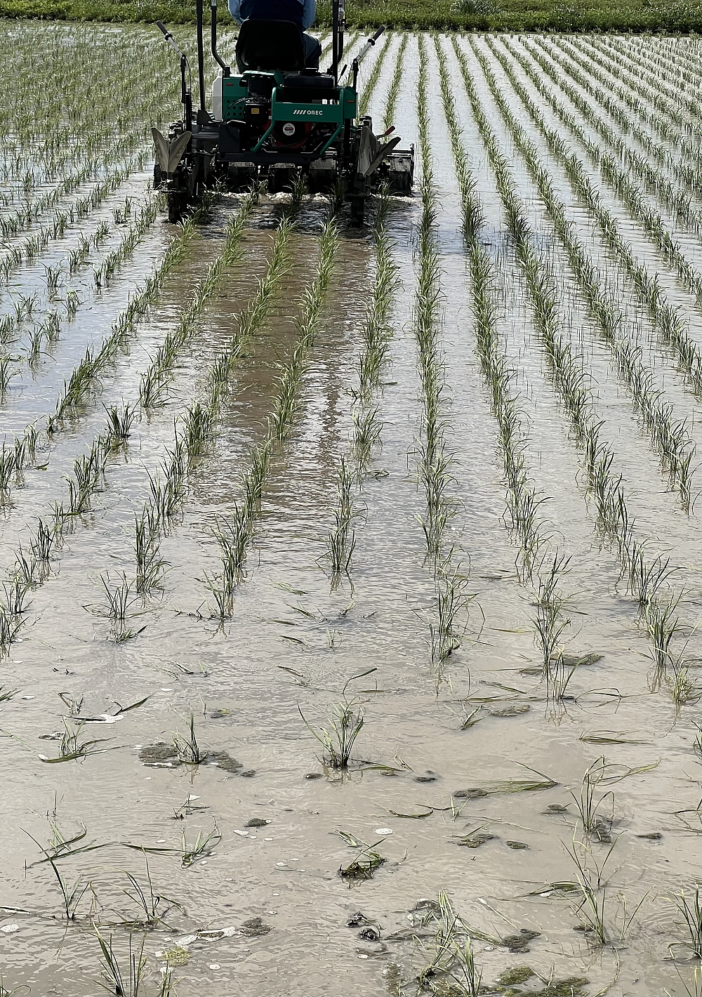 朝7時半に除草機に乗って作業
