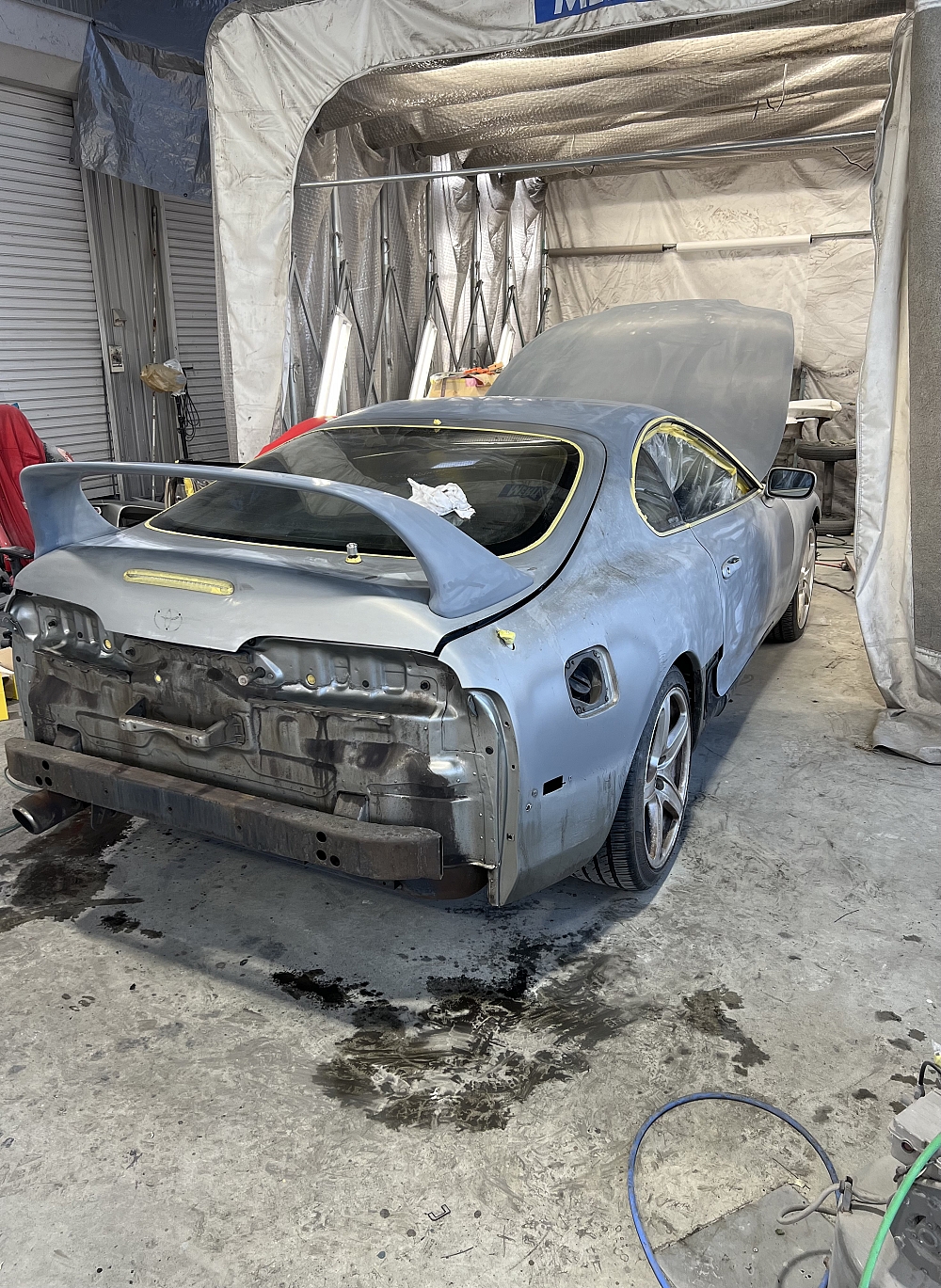 なかなか進まないですが今はこんな状態です、フロントバンパー、サイドステップ、リヤバンパーの補修がまだまだ先です。