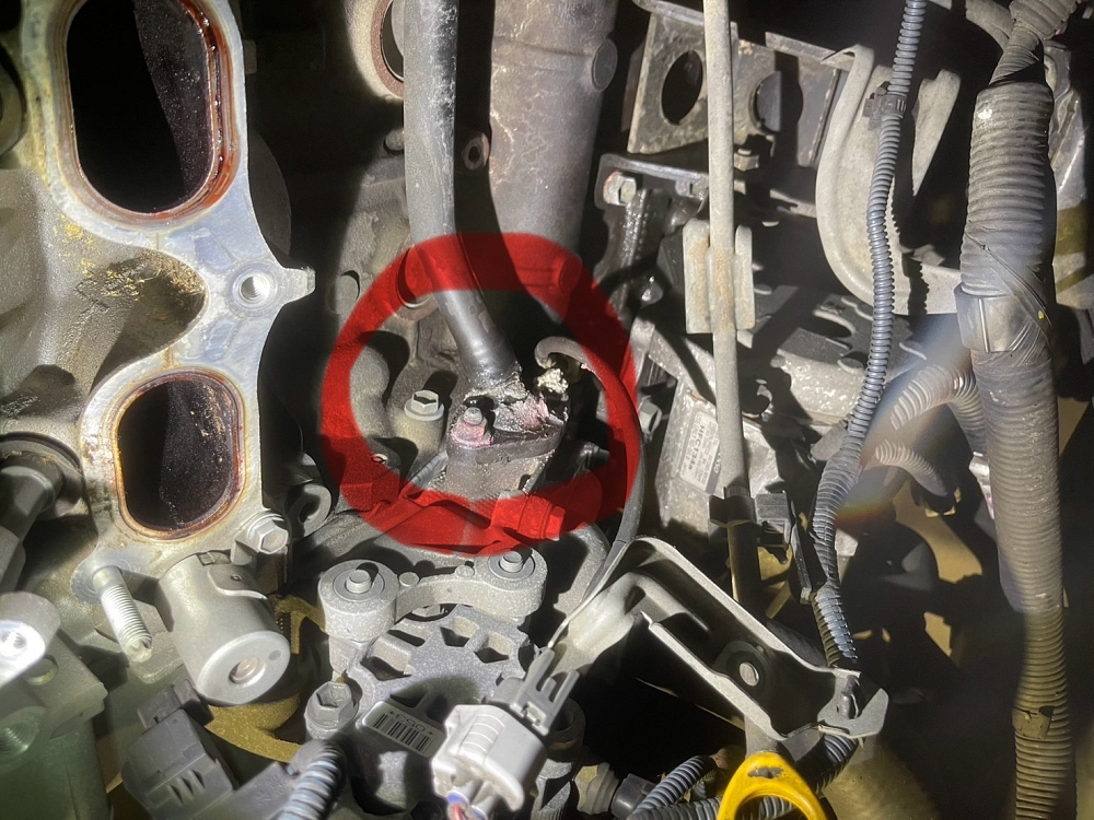 クーラント漏れがあり、原因を調べてたラプラスティックが割れていました。