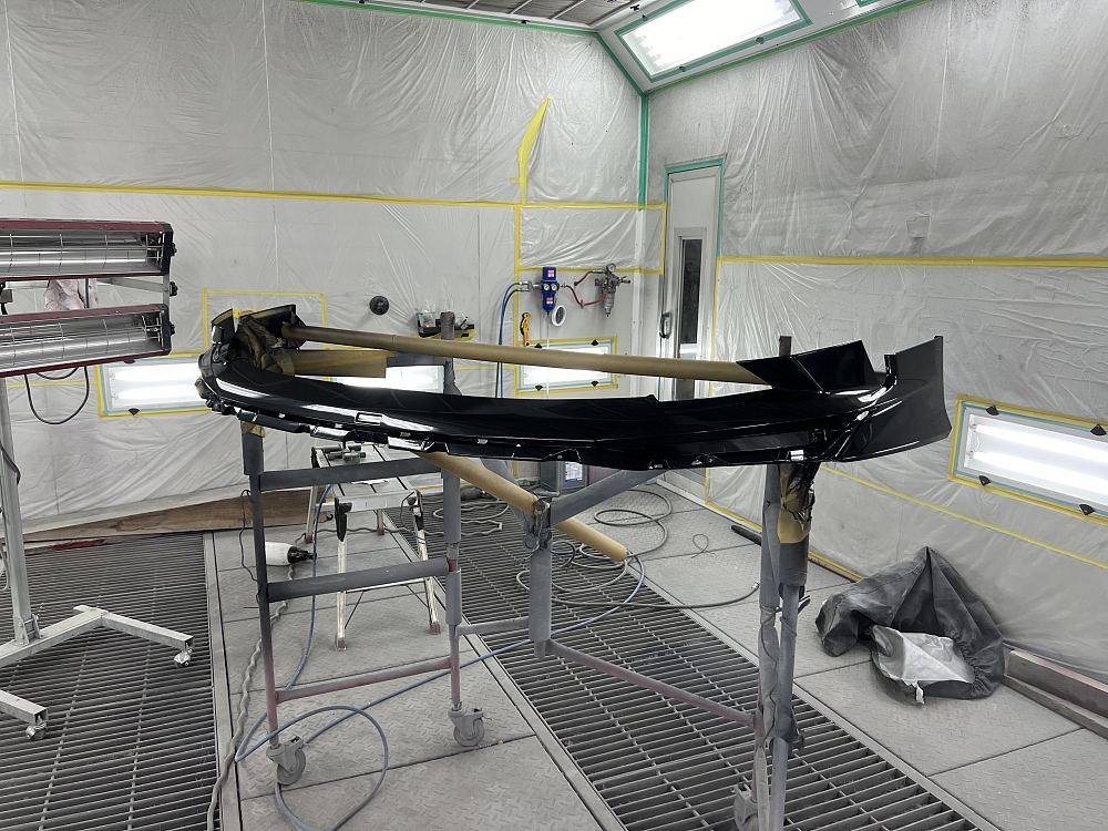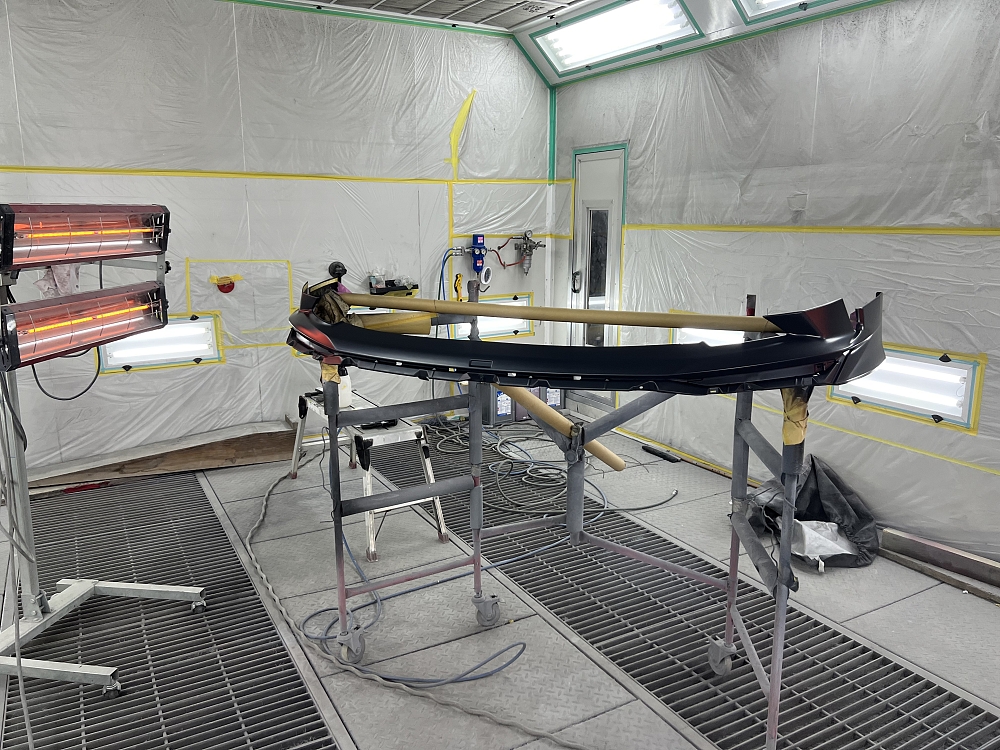 クラウンのフロントハーフとプリウスのフロントスポイラーを塗装しました。