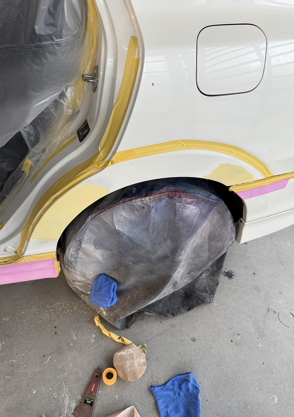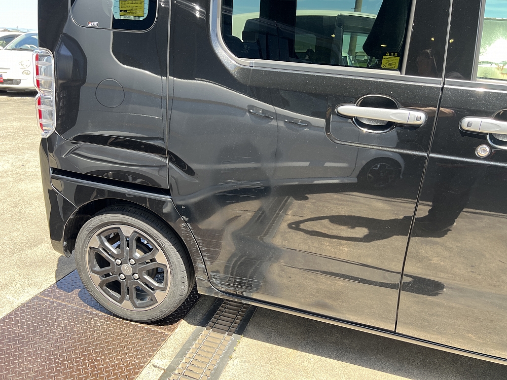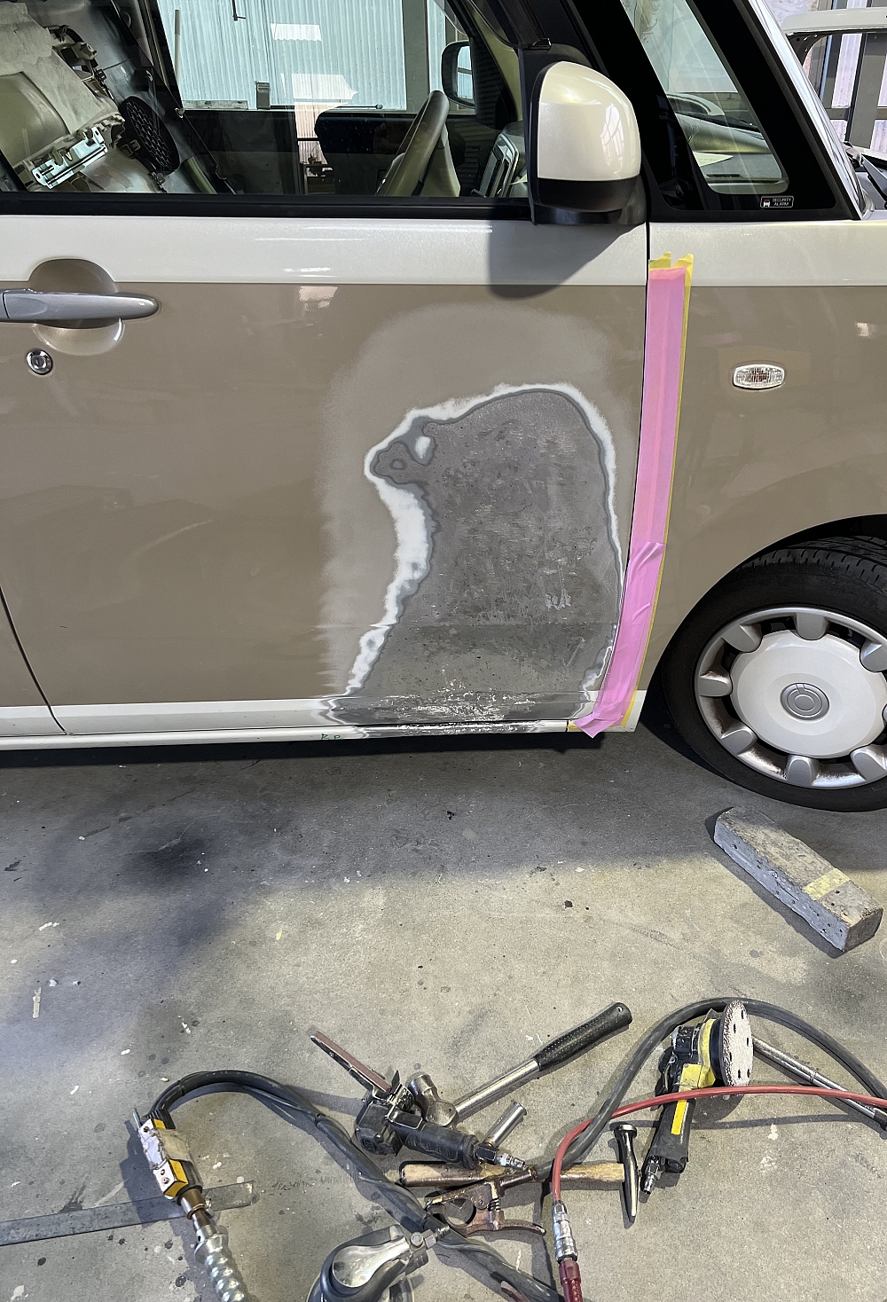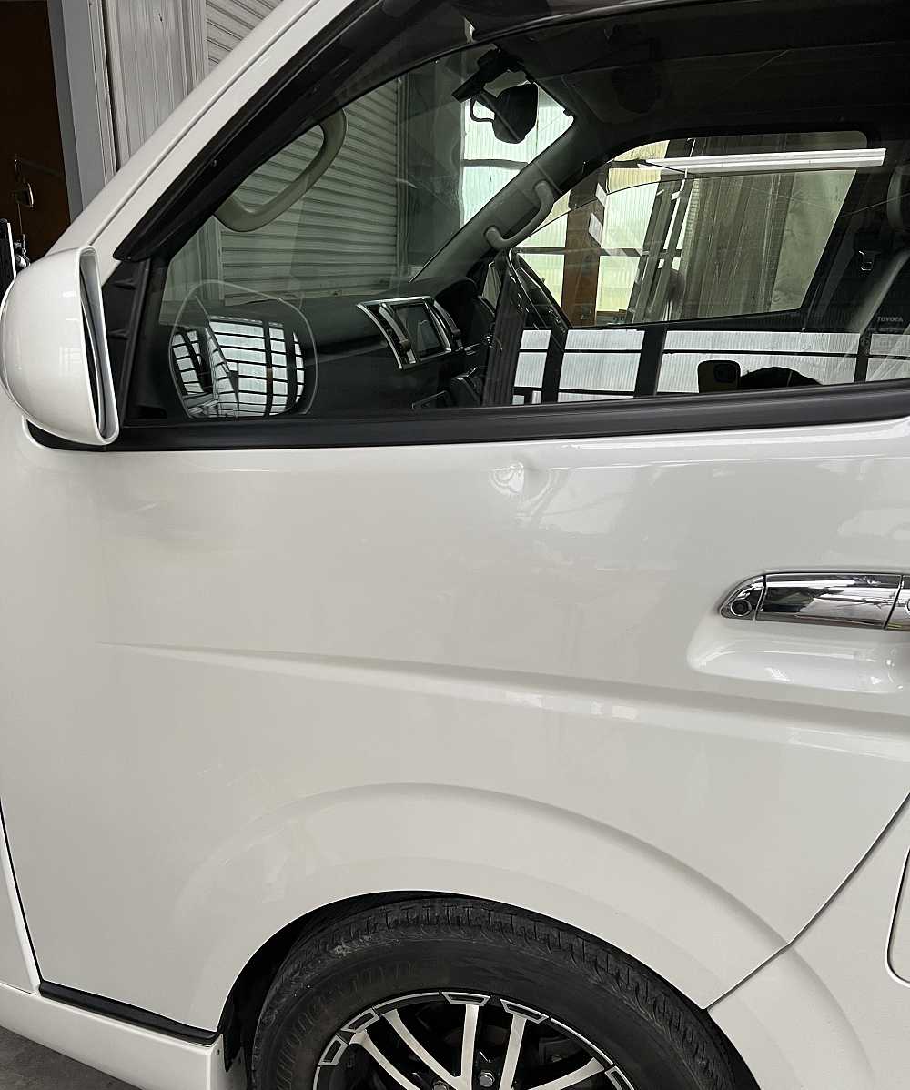 ● ドアの内側まで凹んでいます、クラウンのリヤドアも...